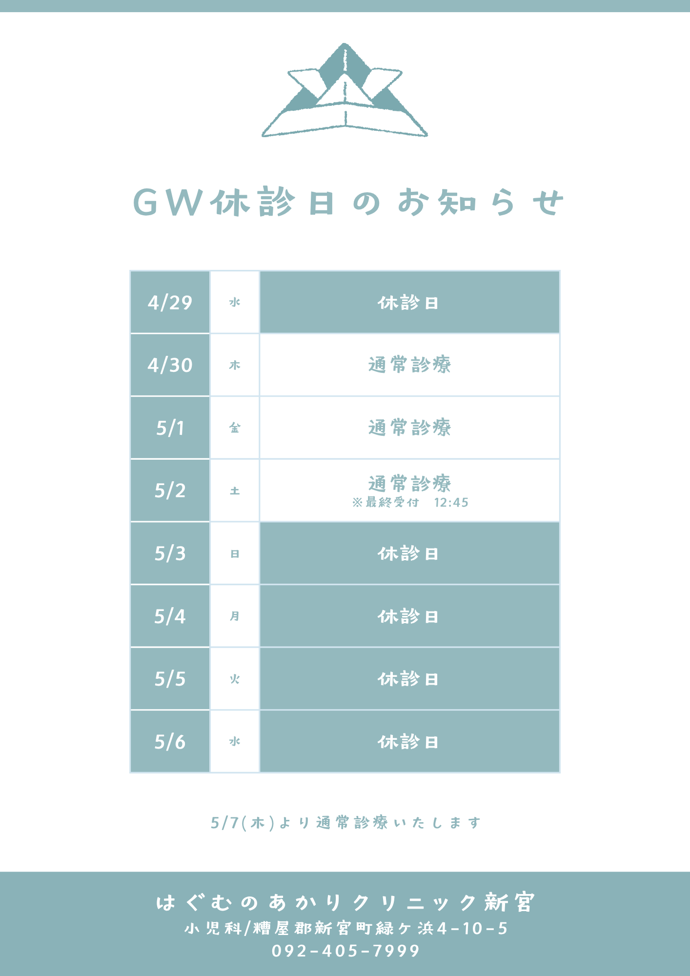 GW休診日のお知らせ